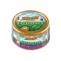 25.5% Chicken, 25.5% Tuna, 3.0% Whitebait 1.0% Rice, 45% Gravy solutions sauce, salsa, sugo – water, starch, thickening powder, vitamin E