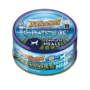 With no Topping Water 44.48%, Tuna 48.84%,Sunflower Oil 2.65%, Jelly Solution (Jelly, Water) 1.45%, Rice 1.16%, Tricalcium Phosphate, Potassium Chloride