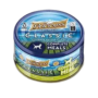 With Sterilised Cats Water 44.51%, Chicken 44.18%, Sunflower Oil 2.65%, Lamb Heart 2.35%, Sweet Corn 1.18%, Green Pea 1.18%, Jelly Solution (Jelly, Water) 1.40%, Rice 1.11%, Tricalcium Phosphate, Potassium Chloride, Sodium Chloride